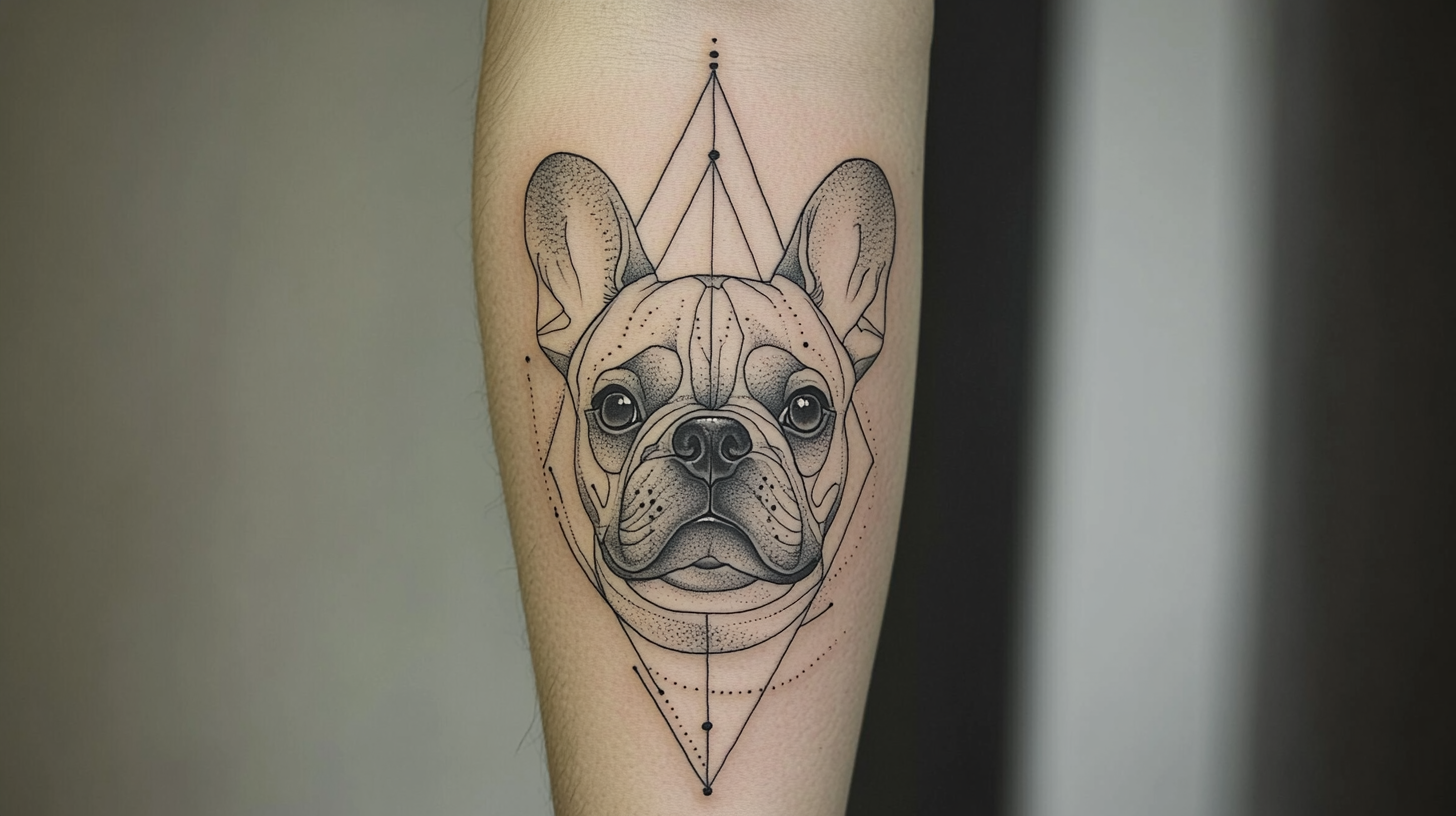 Combine the classic features of a French Bulldog with geometric shapes to create a modern and artistic design. Triangles, circles, and lines can be used to form the dog’s shape in a unique way, adding a contemporary twist to the traditional tattoo.