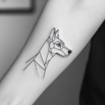 A minimalist line art tattoo captures the essence of a French Bulldog with just a few simple lines. This design is ideal for those who appreciate subtlety and elegance, offering a timeless and understated piece.