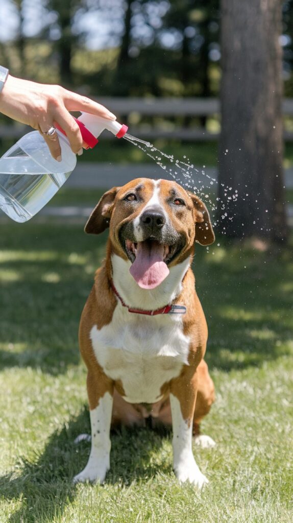 3. Lightly spray your dog’s fur, avoiding the face and eyes. Focus on areas where ticks are likely to hide, like around the ears, under the collar, and near the tail.
