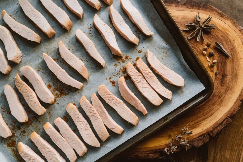 This one is all about simplicity and protein. You can find commercial chicken jerky for dogs at the pet store, but it’s usually pricey and sometimes loaded with preservatives. Enter: DIY chicken jerky.