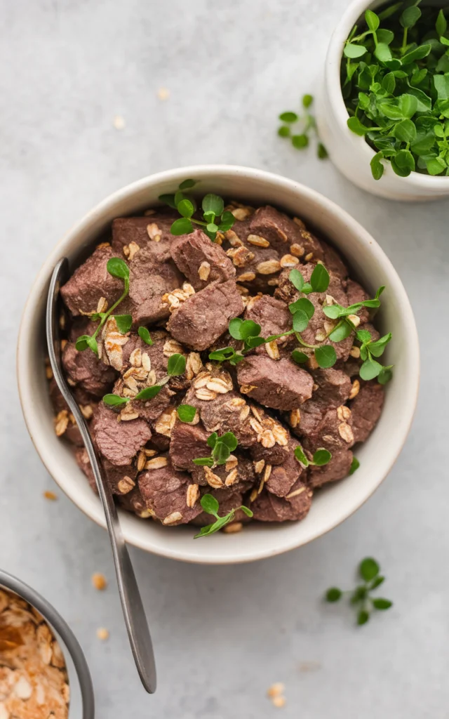 Oatmeal is a great source of fiber and energy, and when paired with beef, it creates a meal that’s both hearty and healthy. Perfect for active pups!