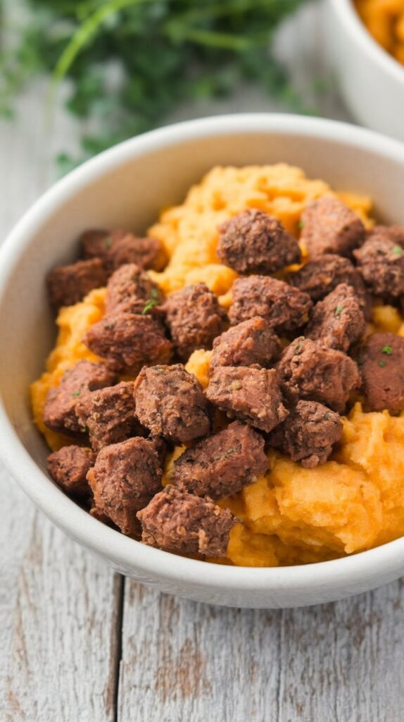 Sweet potatoes are a doggy superfood, and when paired with beef, they create a meal that’s both delicious and packed with nutrients. Think of it as a canine version of comfort food.