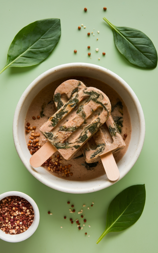 2. Pour the mixture into ice cube trays or popsicle molds.