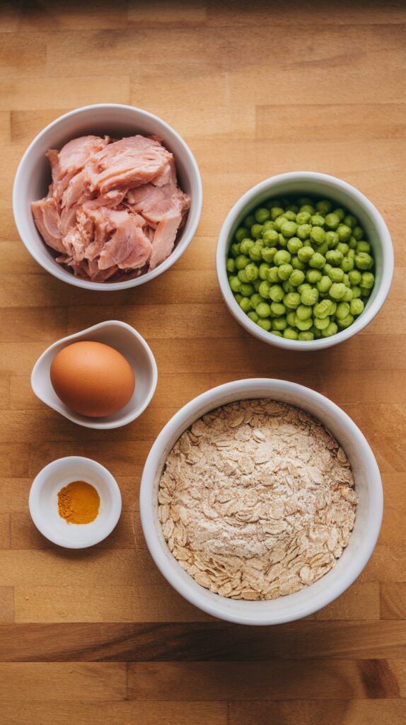 Start by cooking and shredding your chicken. (Pro tip: Use leftovers from last night’s dinner. Just skip the seasoning. Your dog doesn’t need garlic, FYI.) Mash those peas like you’re auditioning for a cooking show. Get everything measured and ready because we’re about to roll.