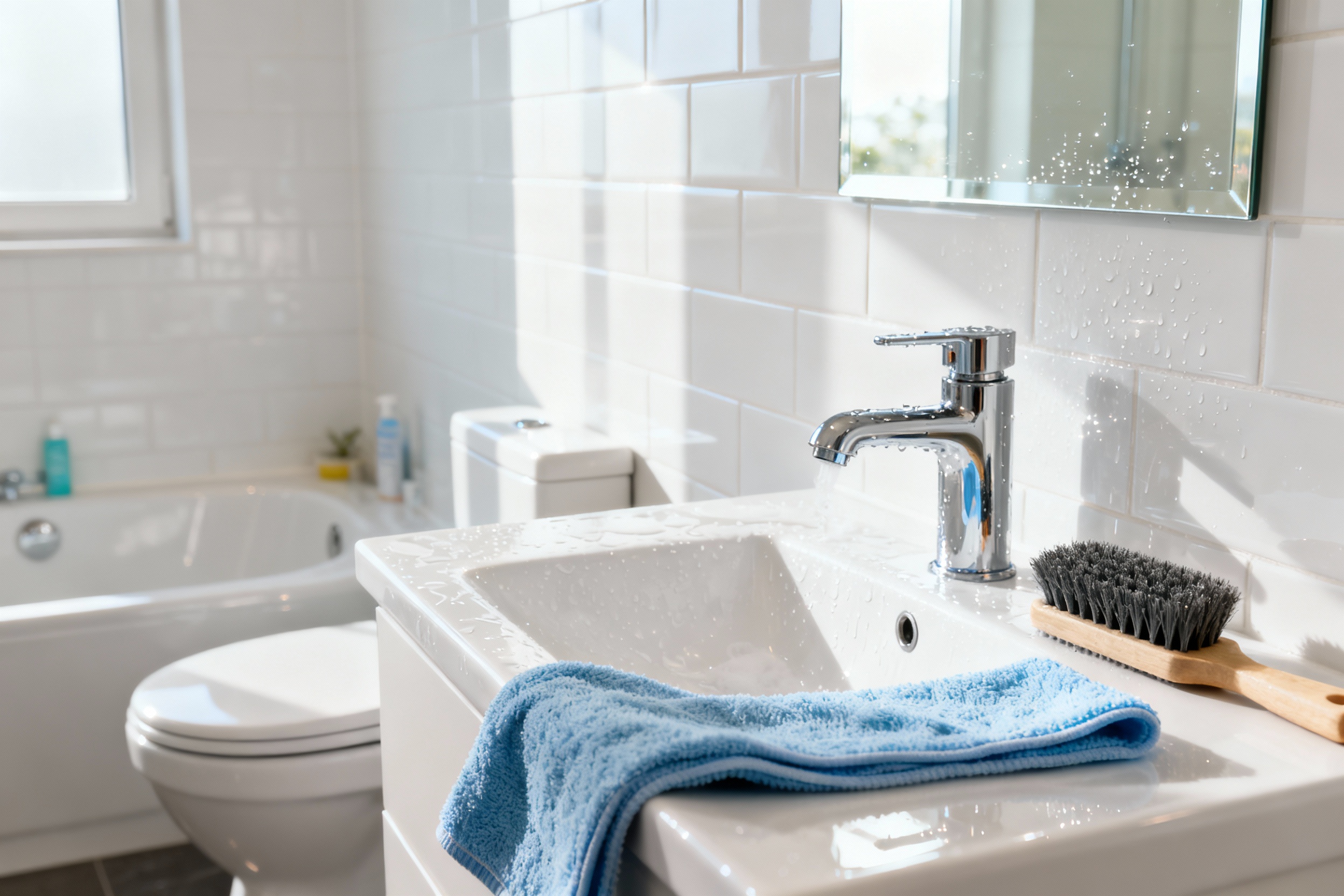- Rinse and buff: Rinse the sink, then buff fixtures with a dry microfiber cloth for that hotel shine.