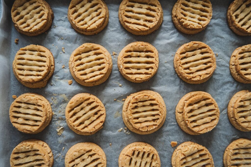 Take a spoonful of dough and roll it into a little ball, then flatten it slightly with your fingers or a fork. Place each cookie on the baking sheet, leaving a bit of space between them (not that they’ll spread much, but hey, good habit).
